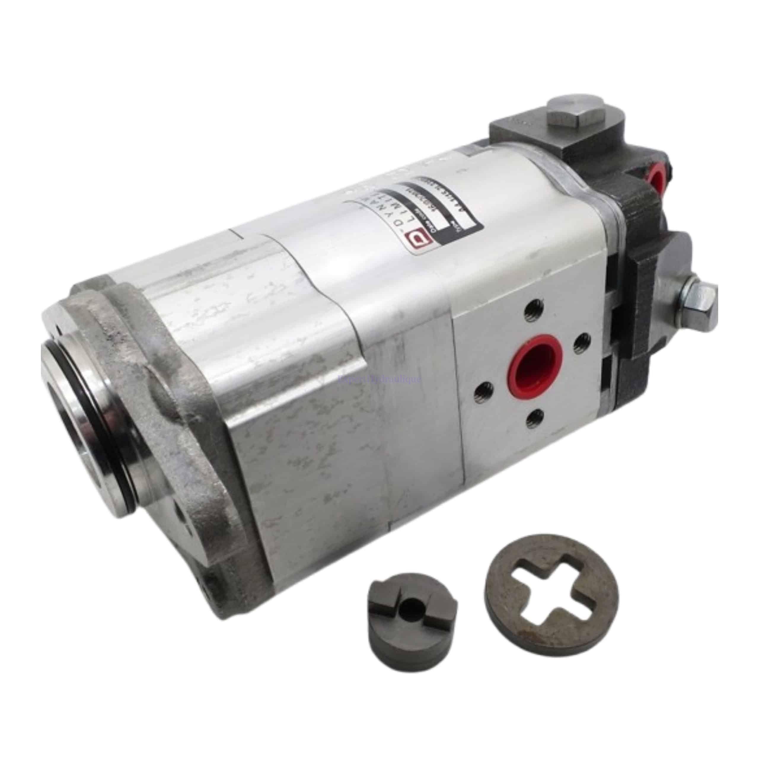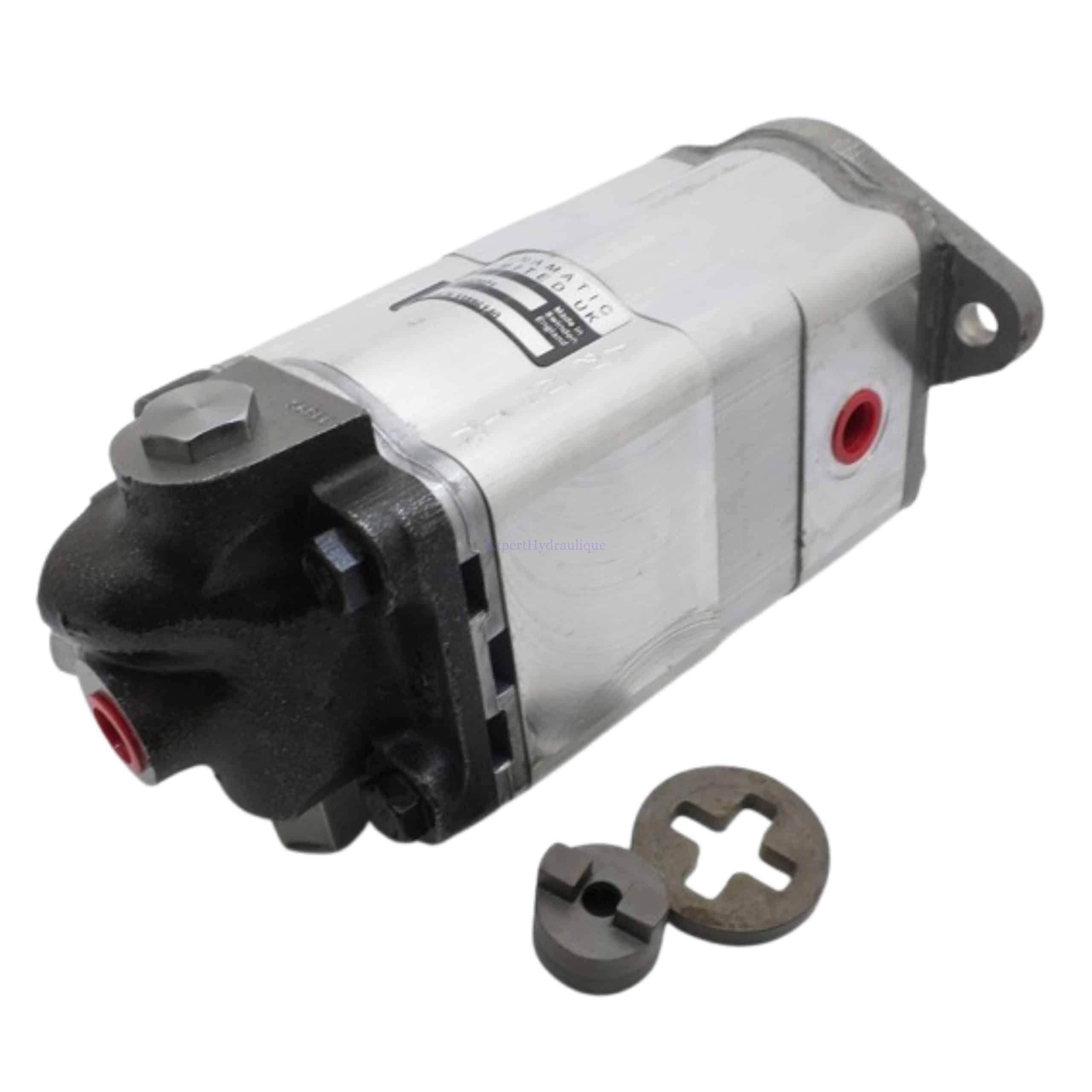 Pompe à engrenage hydraulique triple en fonte : A4/15L33886 pour tracteur JCB : Fastrac. Régulateur de débit et soupape de décharge intégrés dans la pompe.